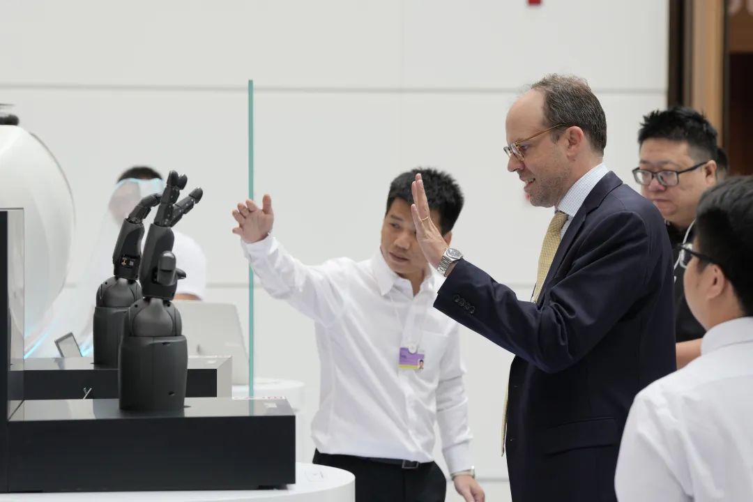 6月24日,一款展出的机械手吸引参会者。中新社记者蒋启明摄